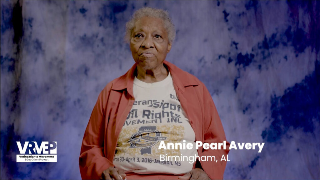 Voting Rights Movement Education Project ANNIE PEARL AVERY The Fight WHAT IS THEVOTING RIGHTS MOVEMENT EDUCATION PROJECT? Discover More The History THE UNITED STATESĀ VOTING RIGHTS MOVEMENT Discover More EXPLORE MORE STORIES Support the retention and comprehension of information through the oral history of those that were there. GEORGIE SHANNONGEORGE JAMESERNEST STURDIVANTCAROLYN ANN VASSAR PICKETTJOHNNY HOLLIS, JR.TOMMY JONESAMOS MOORE Watch Their Stories VRMEP Voting Rights Movement Education Project Join and take action